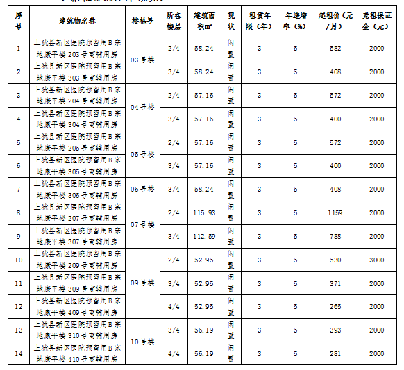 上犹县新区医院B宗地商业楼30宗店面三年租赁权公开招租公告