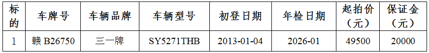 赣州于都万年青商砼有限公司拟资产处置所涉及的一辆三一牌37米泵车网络拍卖公告