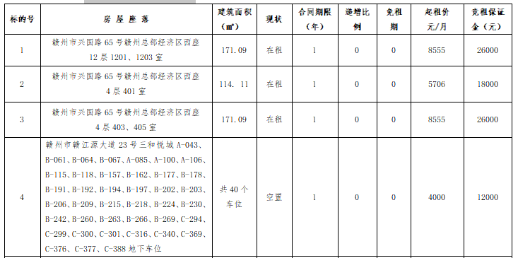 2、标的展示地点:章贡区兴国路总部经济区等标的所在地;
