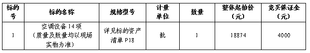 1、本次转让标的物为一批空调设备拆除处置权,标的物品质、数量、功能、重量、新旧程度、价值等以实际现状为准。竞买人务必亲自实地查看标的物,充分了解标的现状,拍卖人和委托方不承担瑕疵担保责任。竞买人一经应价、报价,即表明竞买人对标的现状完全予以接受及认可,竞买成交后买受人不得以任何理由拒绝履行相关款项的缴纳、文件的签署以及承担的义务,拍卖成交后不得反悔,否则竞买保证金不予退还。