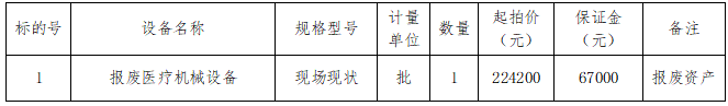 赣州市人民医院一批报废医疗设备公开拍卖公告