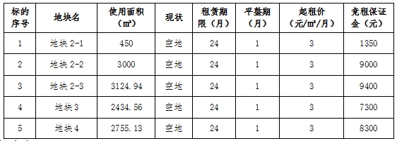 5、符合条件的竞租人请于招租会前与本公司联系,竞租人报名时须缴纳相应的竞租保证金和报名资料费100元/宗;竞租保证金须在2026年4月14日17:00前到账;竞租保证金转入以下银行账户内: