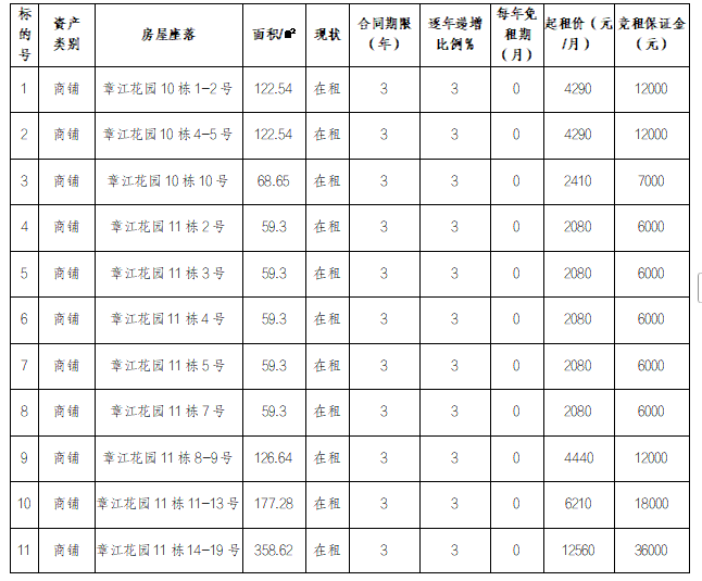 章江花园、阳明国际中心等二十二宗资产招租公告