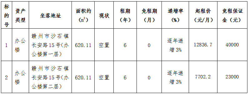(2)招租机构:赣州市圣保耀拍卖行有限公司 李先生19179771225。