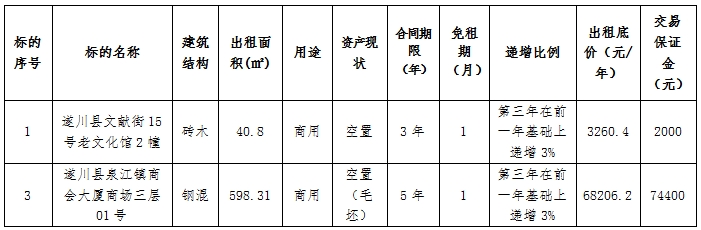 遂川县泉江镇文献街、商会大厦商场共两宗资产公开招租公告