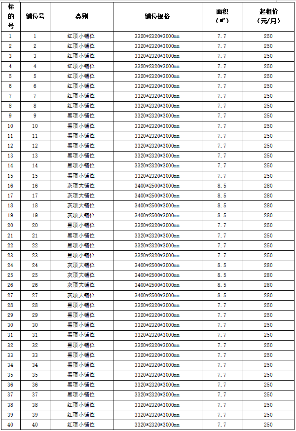 5、本次招租不接受联合体竞租,每个竞租人仅限成交一个铺位。