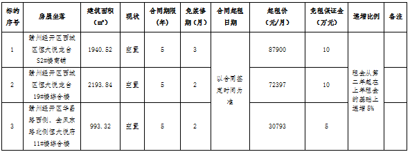 - 上一篇:赣州创新投资发展有限公司七宗资产公开招租网络竞价公告2022/9/19 11:22:27