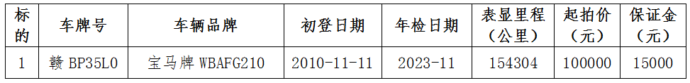 宝马牌赣BP35L0机动车网络第二次拍卖公告