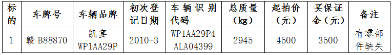 赣州市公安局一辆涉案查扣凯宴车网络竞价拍卖公告