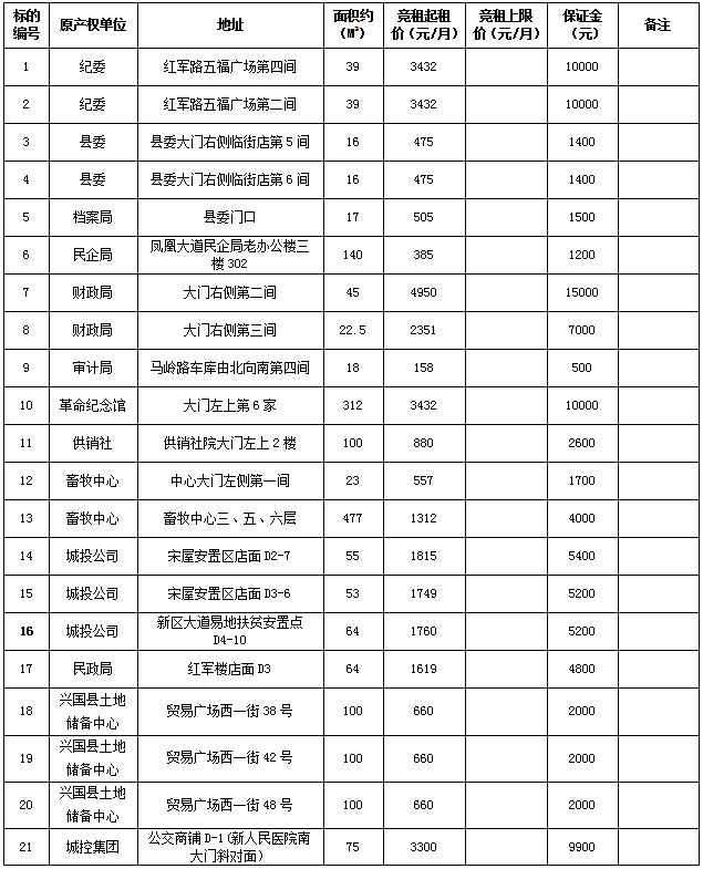 招租会地点:兴国县行政服务中心院内综治中心大楼4楼县公共资源交易中心2号开标室。