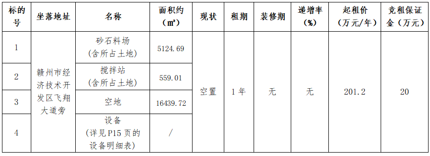 受赣州城投混凝土有限公司(以下简称“出租单位”)委托,我公司定于2025年11月21日10:00开始在江西省公共资源数智交易平台综合产权交易系统,通过网络竞价公开招租赣州城投混凝土有限公司老站房地产及设备,现将有关事项公告如下: