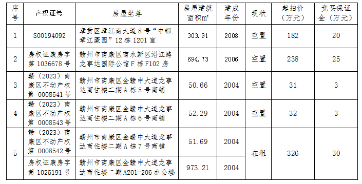 赣州市章江南大道8号“中都.章江豪园”、南康区龙事达国际公馆等五宗资产公开拍卖网络竞价公告
