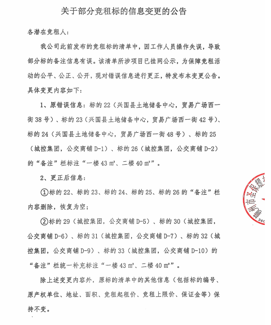 兴国县2025年度第七批次国有资产房屋店面公开招租变更公告