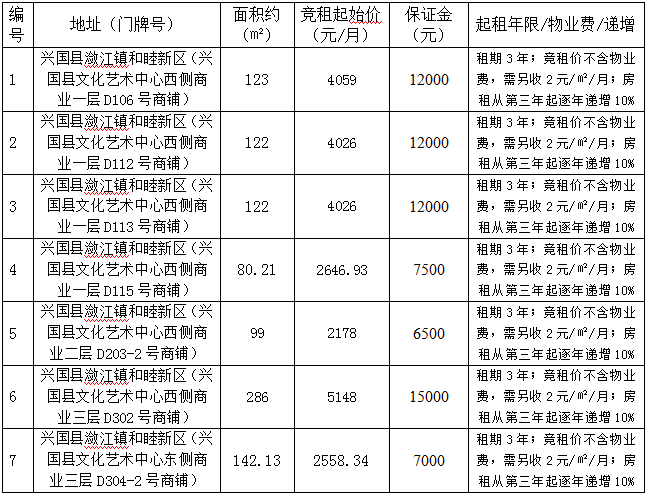 1、出租单位:兴国城投弘心物业管理有限责任公司 肖先生18079783666