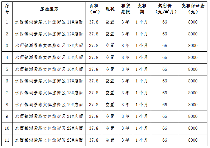 水西镇湖景路文体旅街区店面第二次公开招租公告