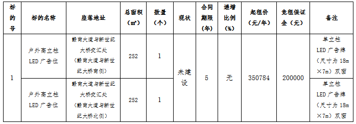 2、标的展示地点:新世纪大桥桥头地段(详见招租标的基本情况);
