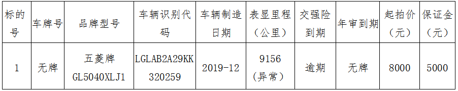 3、标的查看说明:竞买人需自行前往标的地点,现场核实车辆现状(含瑕疵)、相关证件,勘查标的过程中需遵守现场管理规定,不得损坏车辆及相关物品;拍卖人及委托人不承担任何关于标的保证说明,标的托运拆解费用由竞买人自行承担。