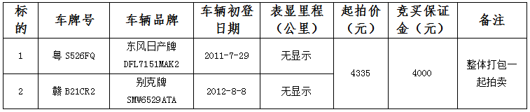 粤S526FQ、赣B21CR2两辆法院判决涉案车辆网络竞价拍卖公告